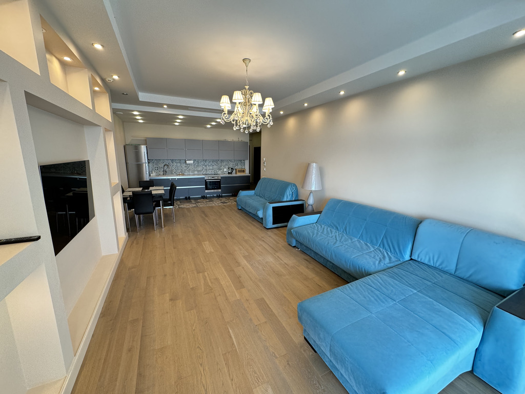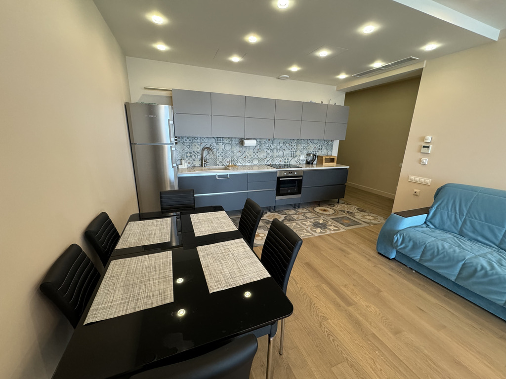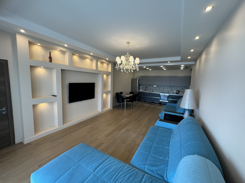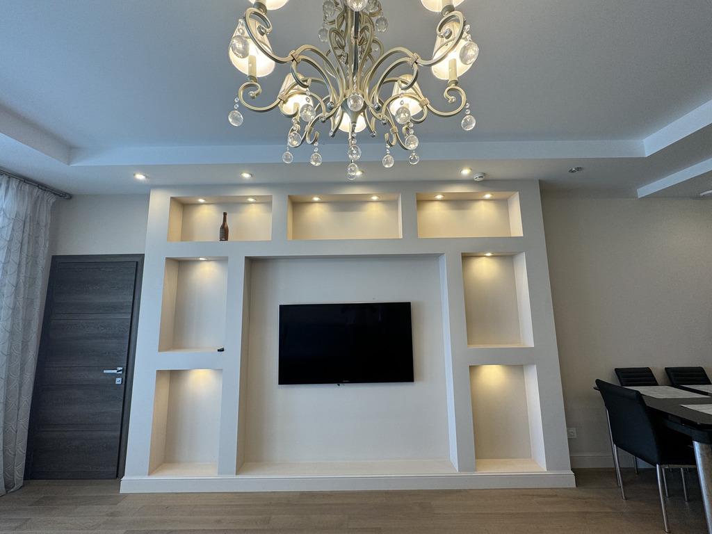 Апартамент полностью готов для проживания — выполнена высококачественная отделка и полная комплектация мебелью и бытовой техникой.