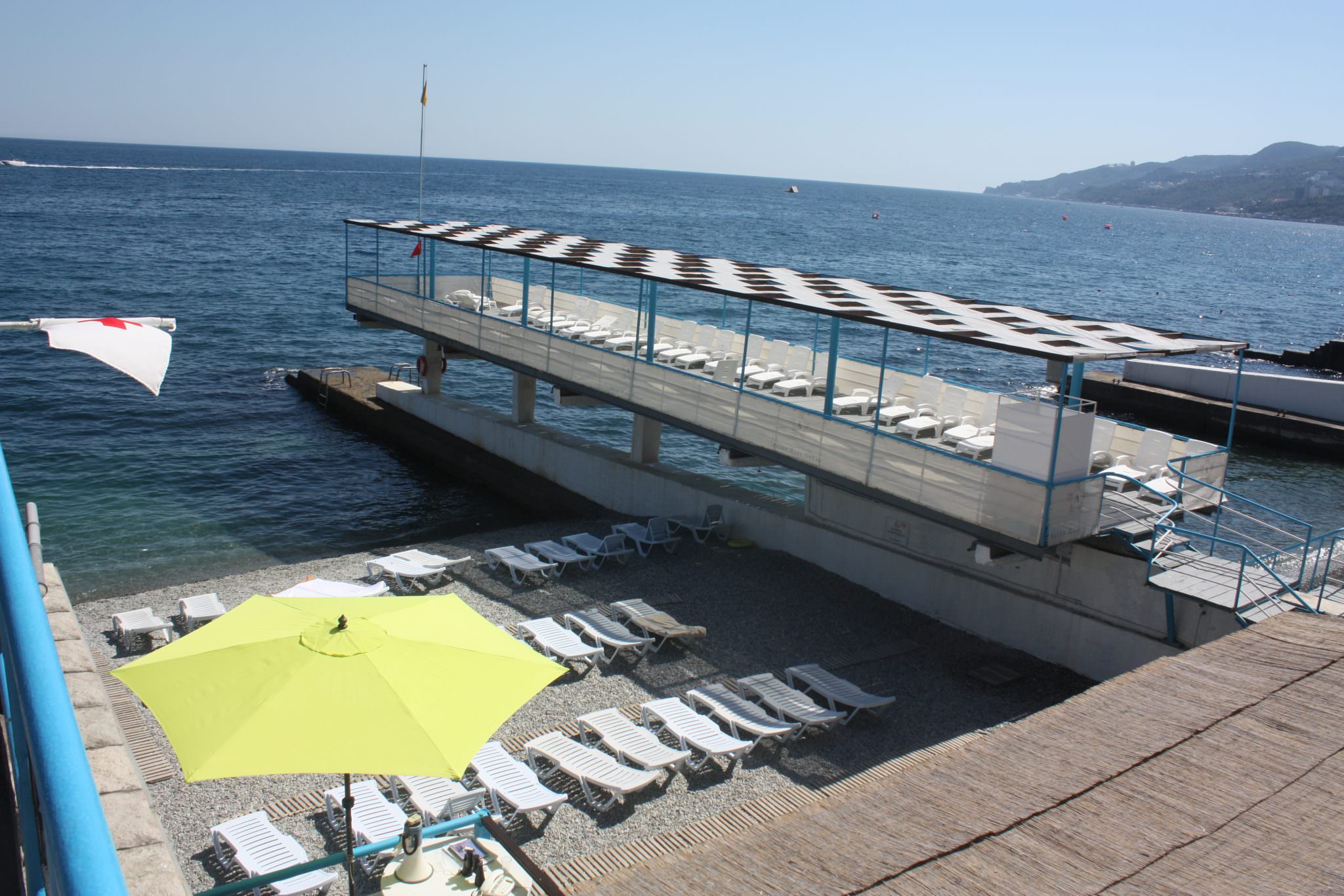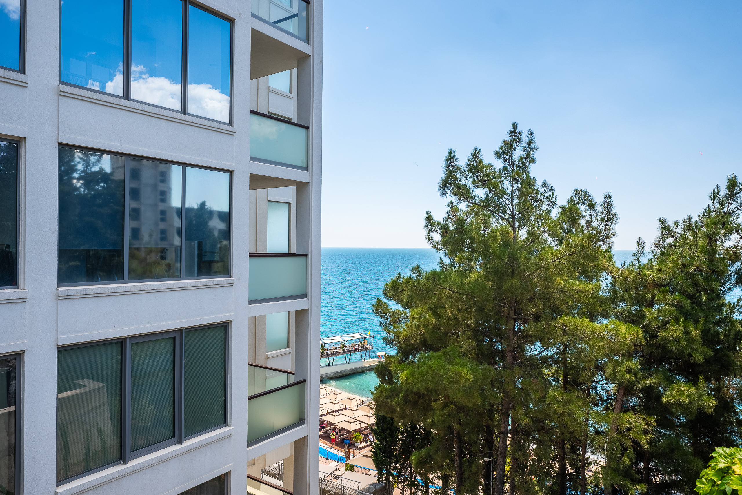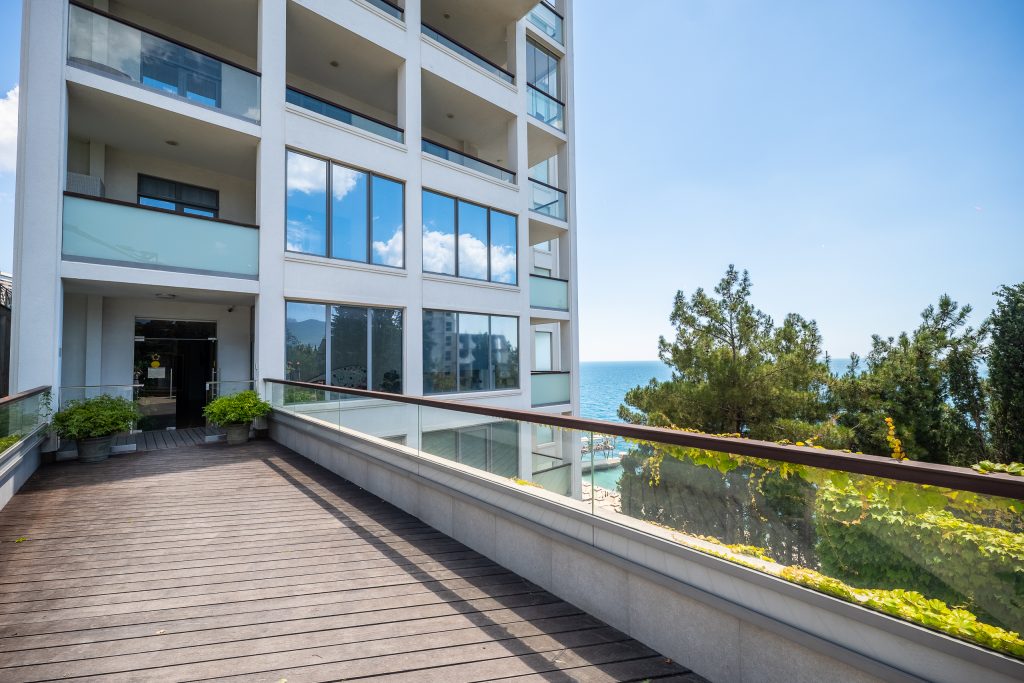 Это единственный комплекс в Ялте, обладающий собственным закрытым пляжем, расположенный на первой линии у самого моря.