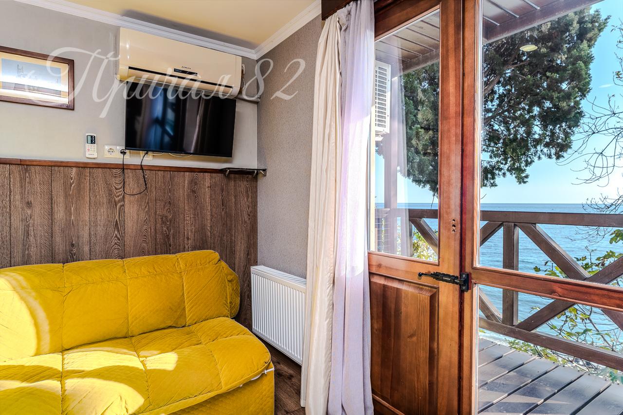 Гостиница расположена на берегу моря — прямо над Массандровским пляжем.