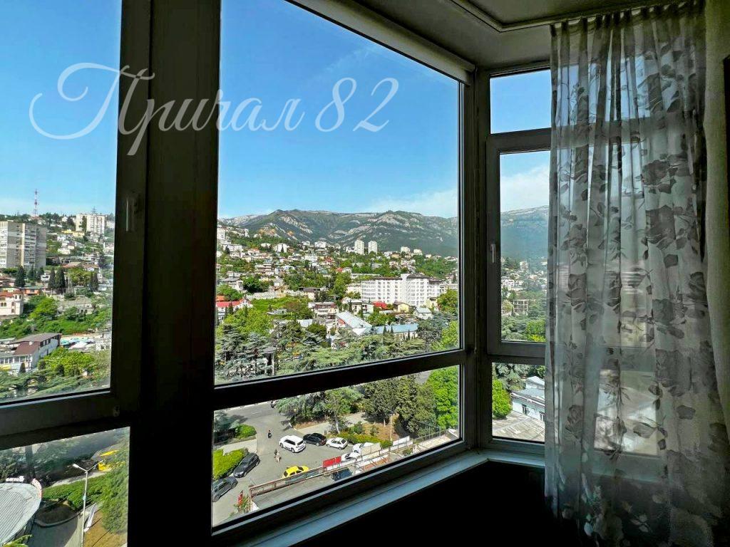 Спальня с двуспальной кроватью, зеркальным шкафом и выходом на застекленную лоджию с видом на горы
