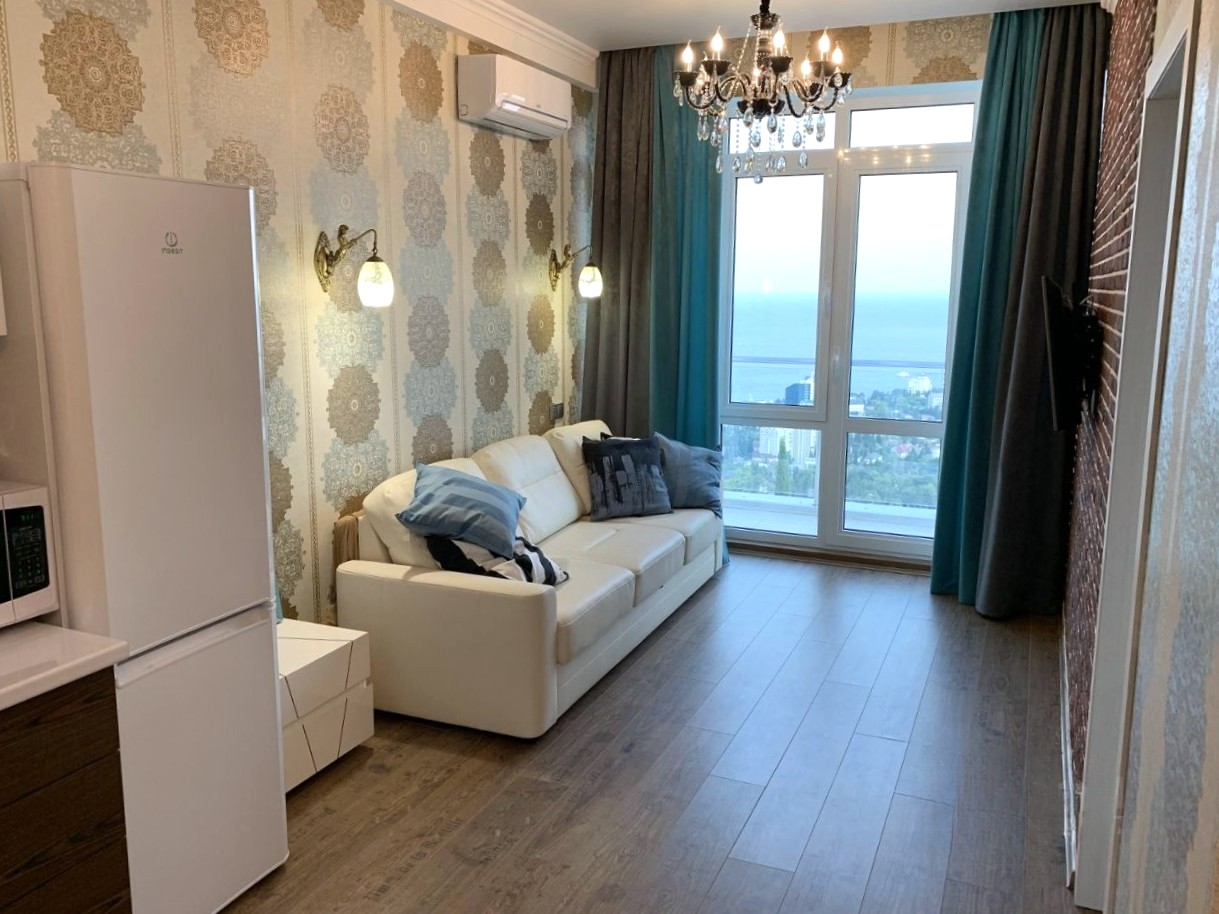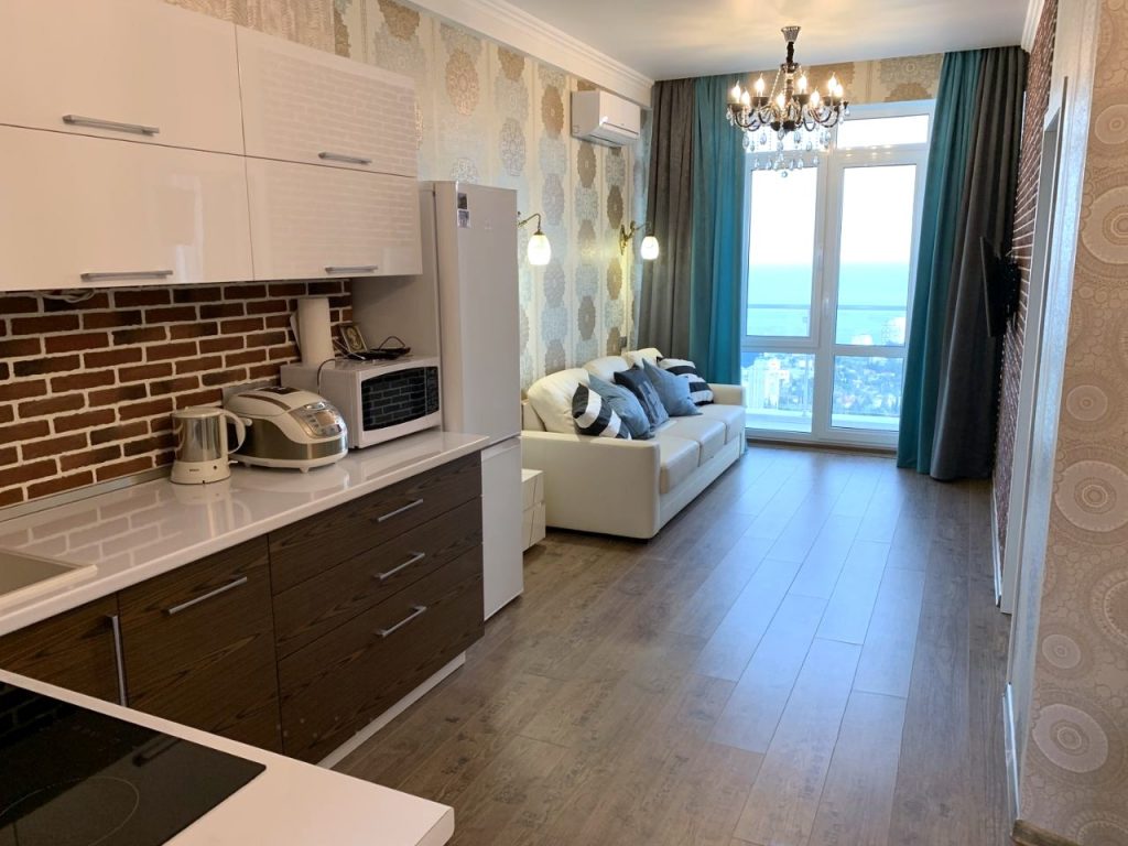 Включает в себя — кухню-гостиную, спальню, совмещенный с/у, прихожую, балкон.