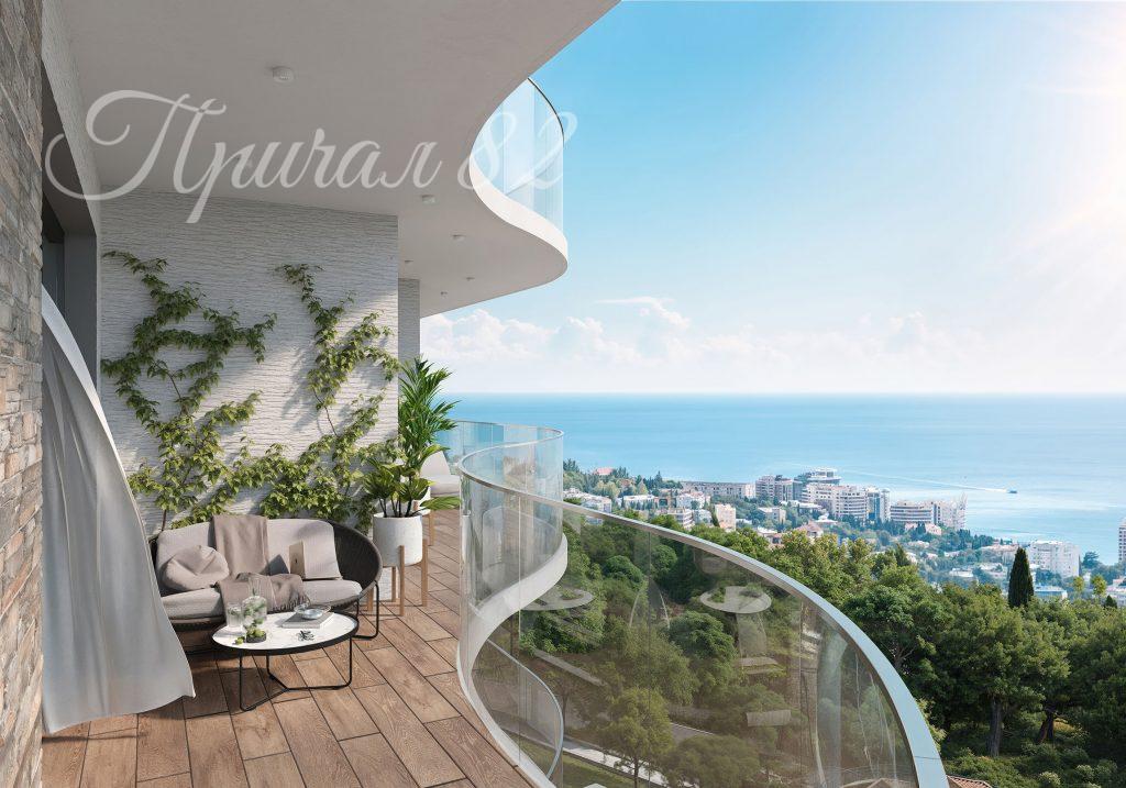 Представляем вашему вниманию квартиру №13 общей площадью 97,7 м2 на 4 этаже, с захватывающим видом на лазурное море, величественные горы и прекрасную Ялту.