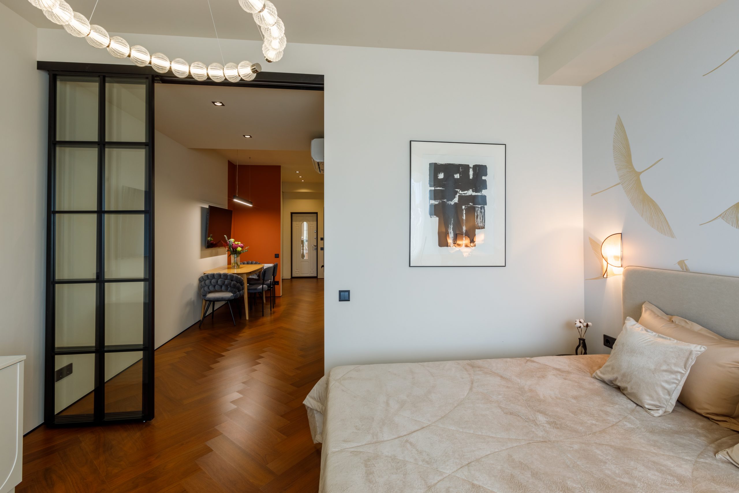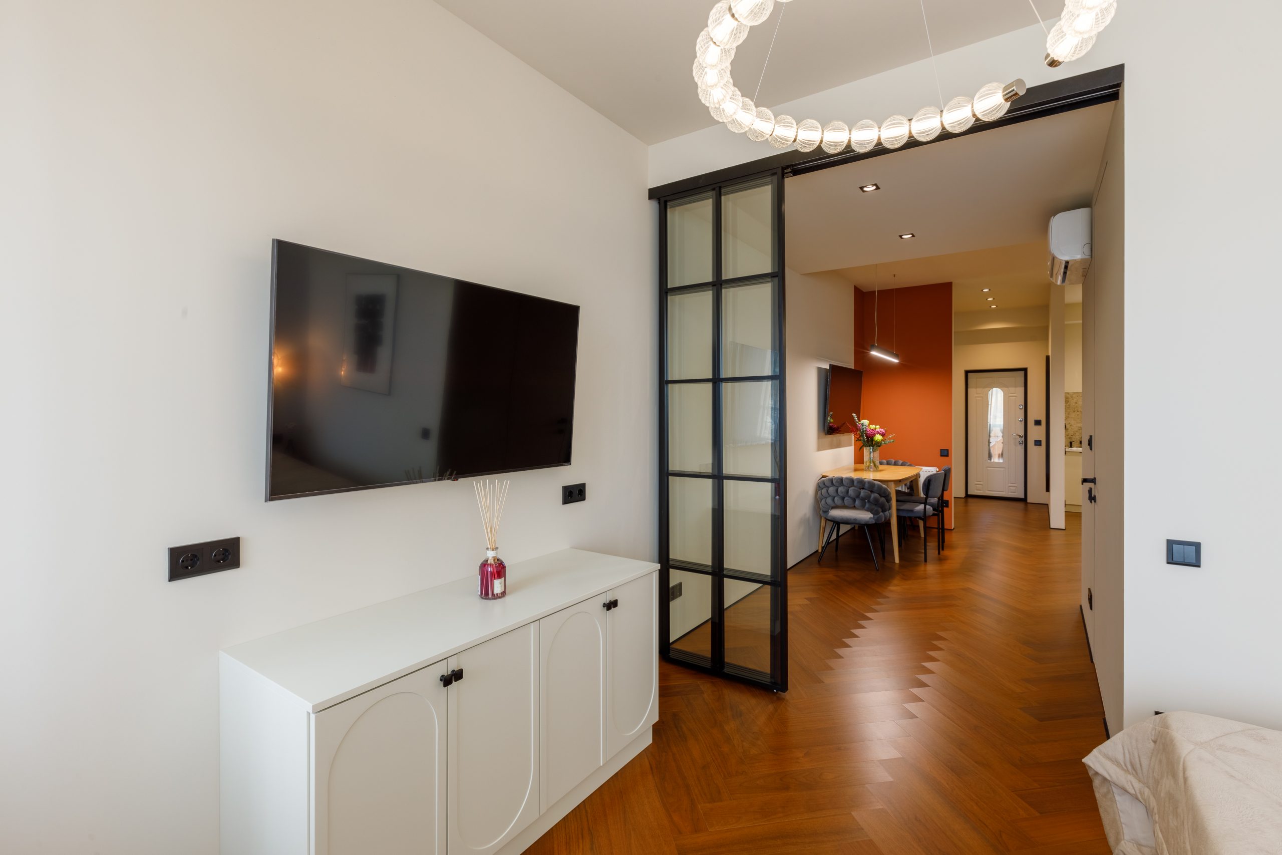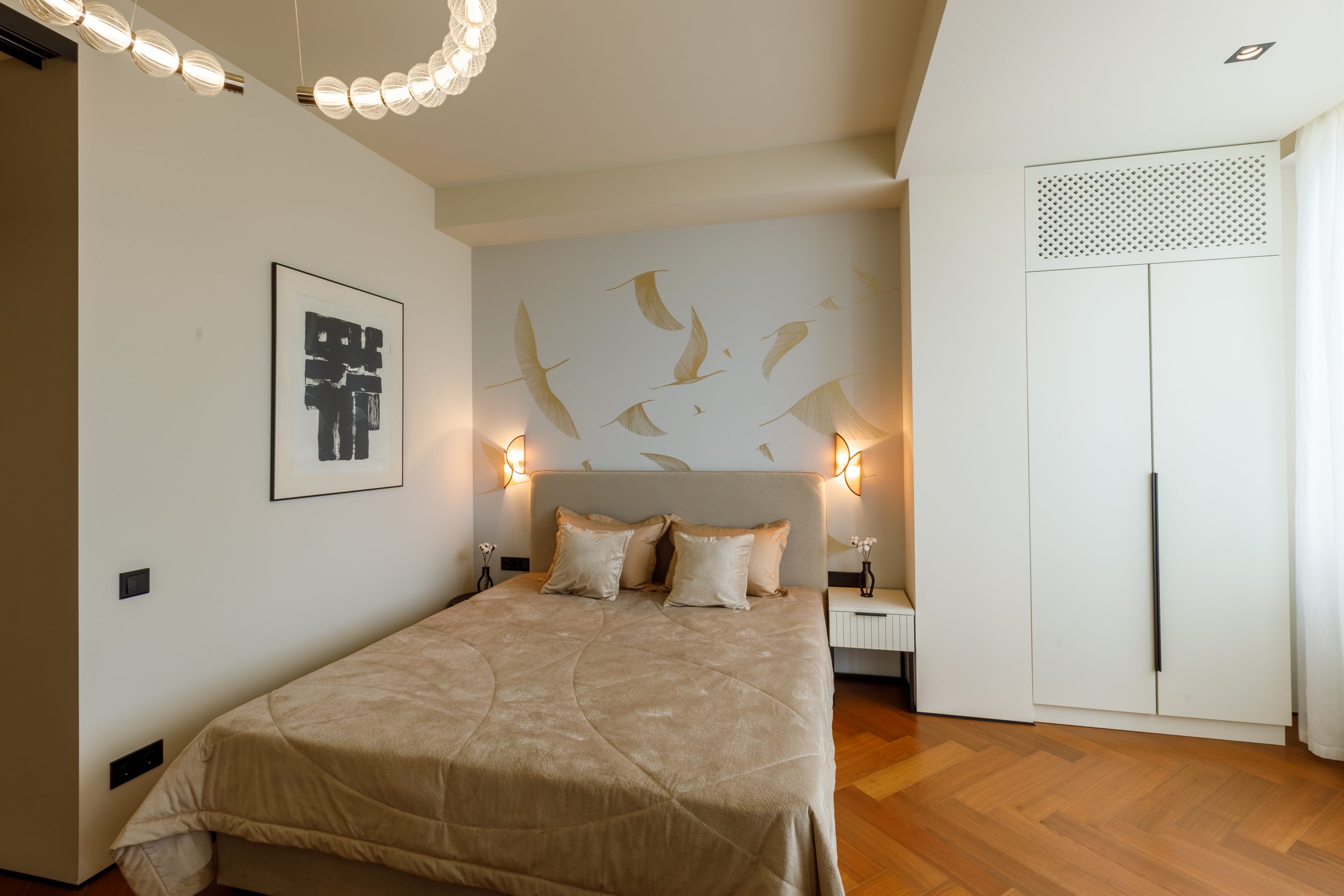 Продуманная до мельчайших деталей комплектация квартиры удовлетворит даже самого взыскательного покупателя. Кухня-гостиная, выполненная по индивидуальному проекту, оснащена современной техникой Electrolux и Haier, а также мебелью от ведущих брендов. Спальня предлагает идеальное пространство для отдыха с кроватью king-size, премиальным матрасом и встроенной мебелью. Санузел поражает элегантностью и функциональностью, включая дизайнерское душевое ограждение и электрический бойлер.