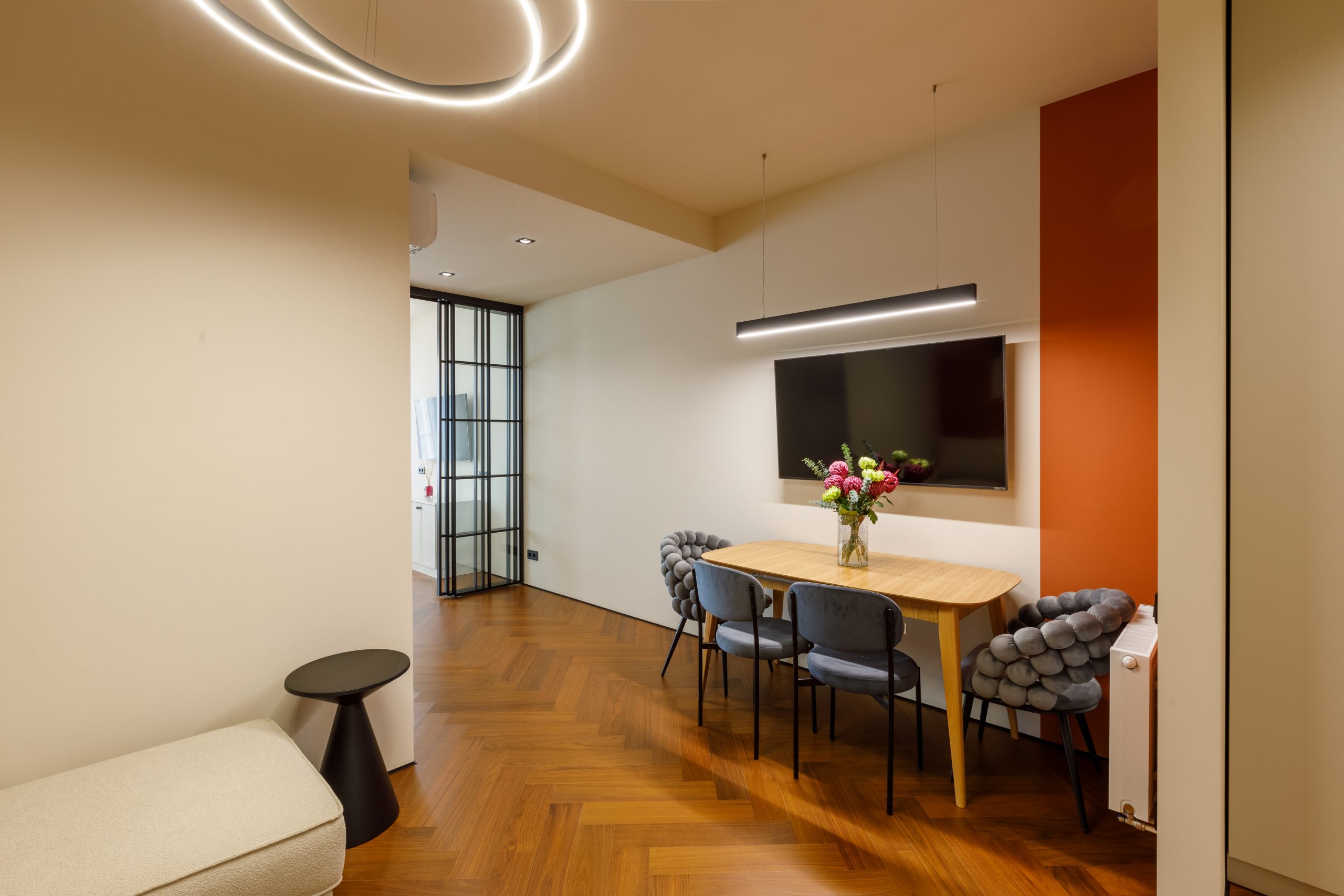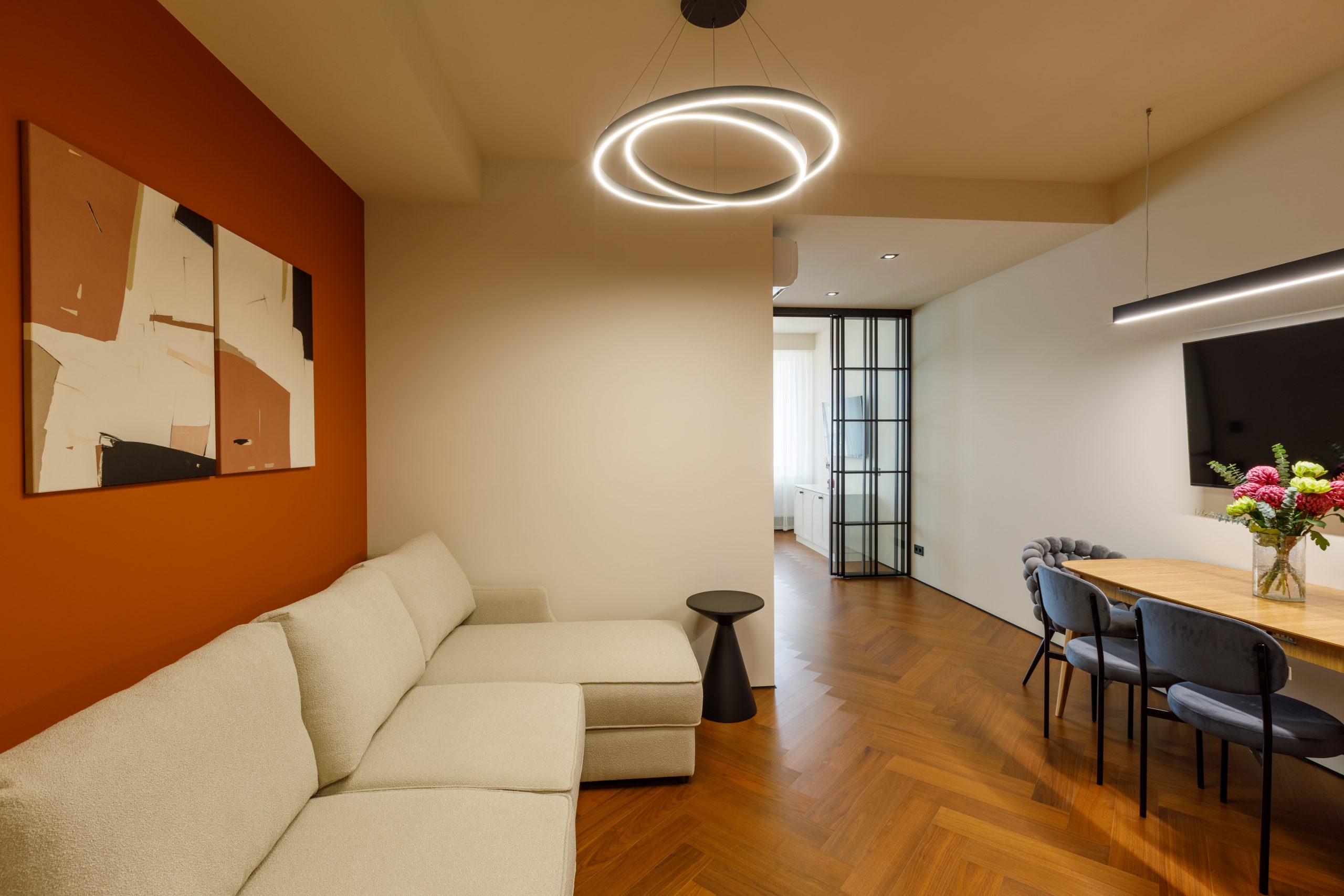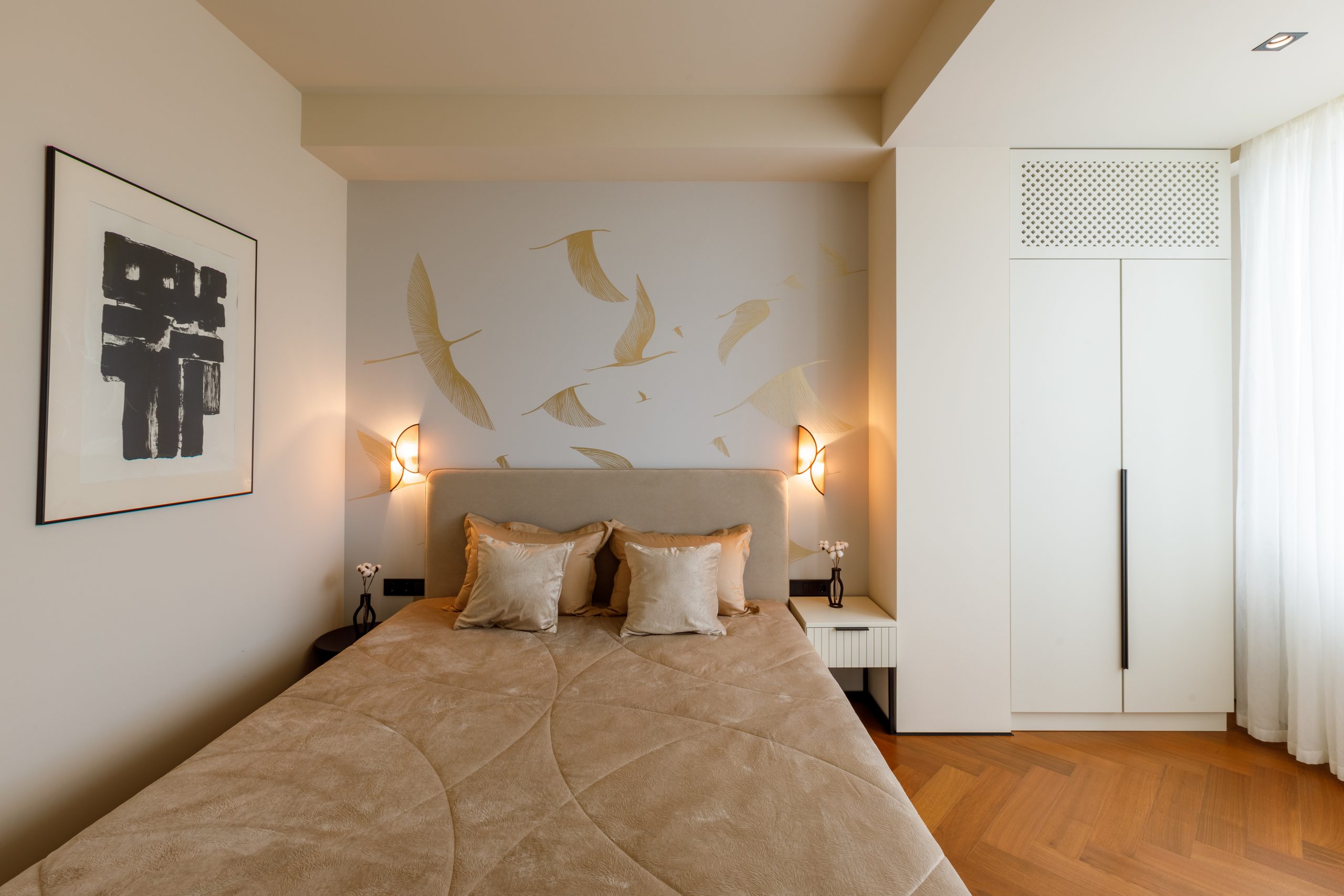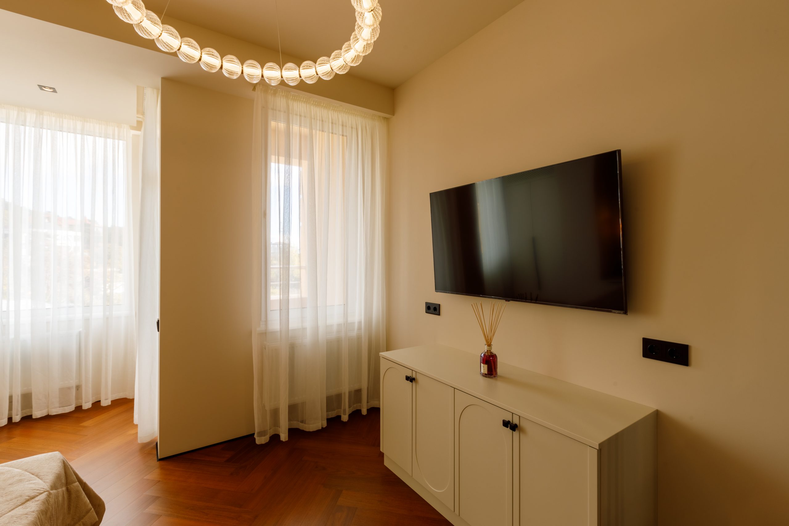Продуманная до мельчайших деталей комплектация квартиры удовлетворит даже самого взыскательного покупателя. Кухня-гостиная, выполненная по индивидуальному проекту, оснащена современной техникой Electrolux и Haier, а также мебелью от ведущих брендов. Спальня предлагает идеальное пространство для отдыха с кроватью king-size, премиальным матрасом и встроенной мебелью. Санузел поражает элегантностью и функциональностью, включая дизайнерское душевое ограждение и электрический бойлер.