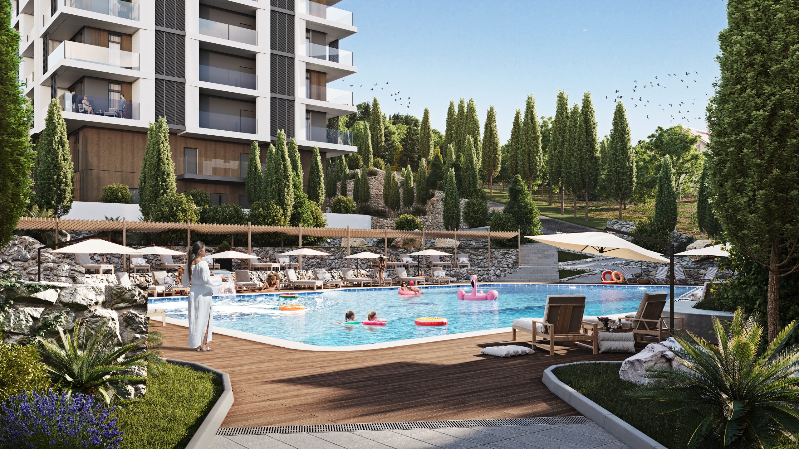 На территории комплекса разместят: подогреваемый бассейн 600 м², SPA-центр с хаммамом и массажными кабинетами, фитнес-зал, тематический ресторан, бар у бассейна, кафе, кофейню, детский центр с языковым уклоном, кинотеатр под открытым небом, спортивные площадки и зоны BBQ.
