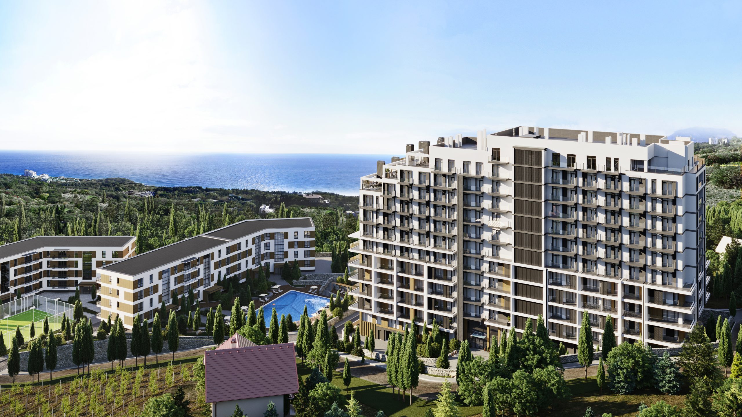 Застройщик АЛУШТА-РИВЬЕРА — ГК «Аркада Девелопмент». Строительство по 214-ФЗ с использованием эскроу-счетов и проектного финансирования. Также возможна удалённая сделка с электронной регистрацией. Плюс юридические лица могут вернуть НДС. Комплекс сдается в 2027 году.