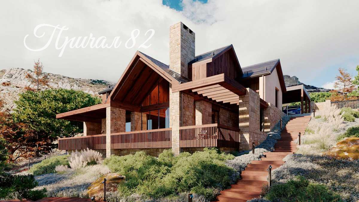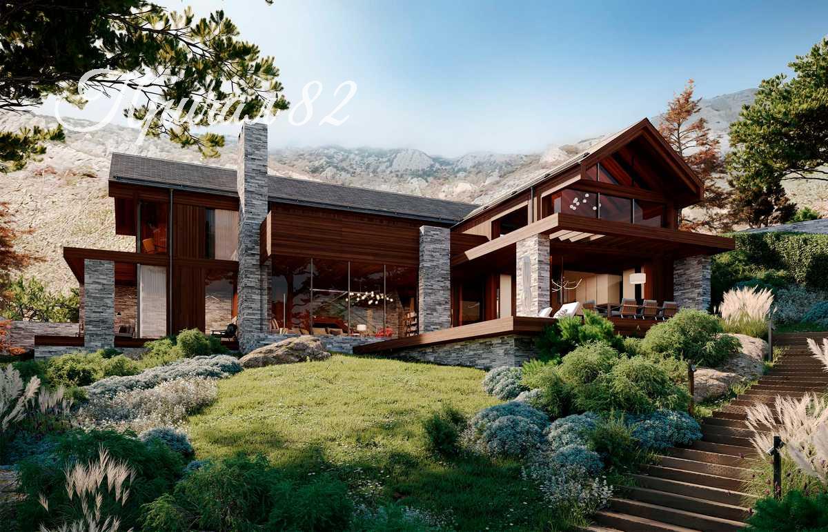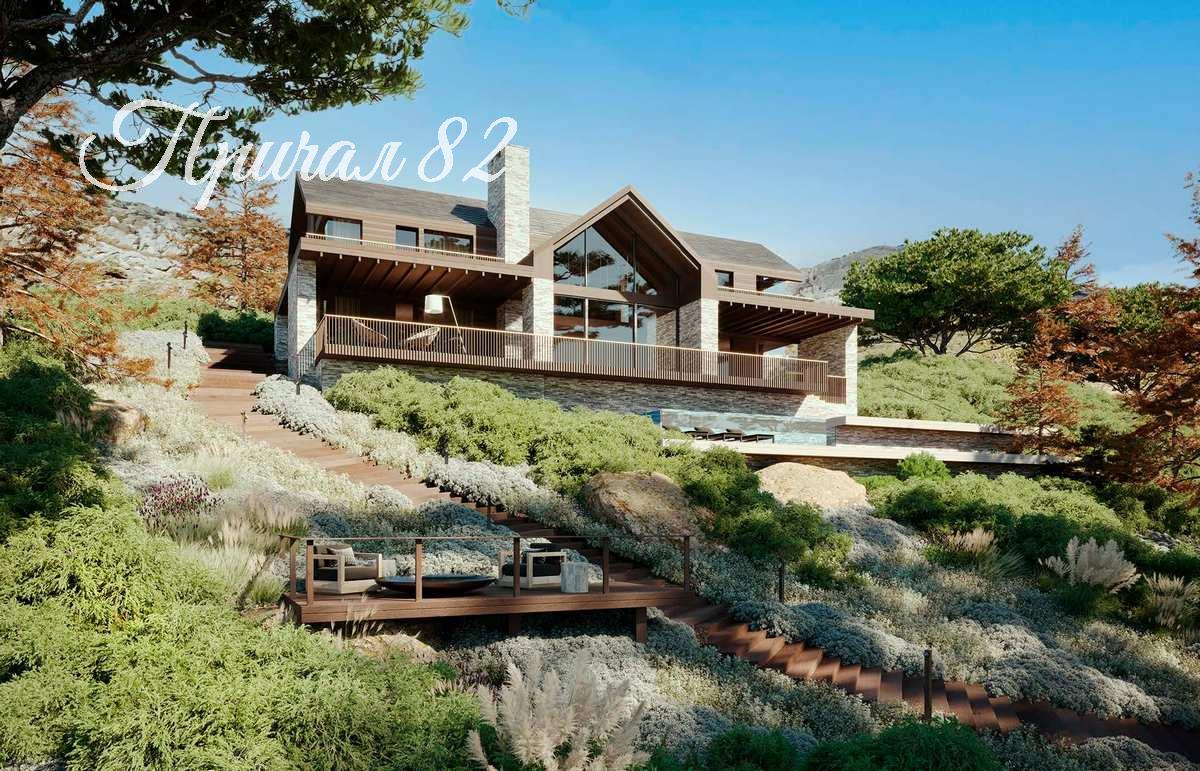 Весь комплекс выполнен в архитектурном стиле «Шале», который гармонично вписывается в уникальный горный ландшафт местности. Отличительные особенности данного архитектурного решения — применение натурального камня и дерева, а панорамное остекление со вторым светом придает проекту уникальность.