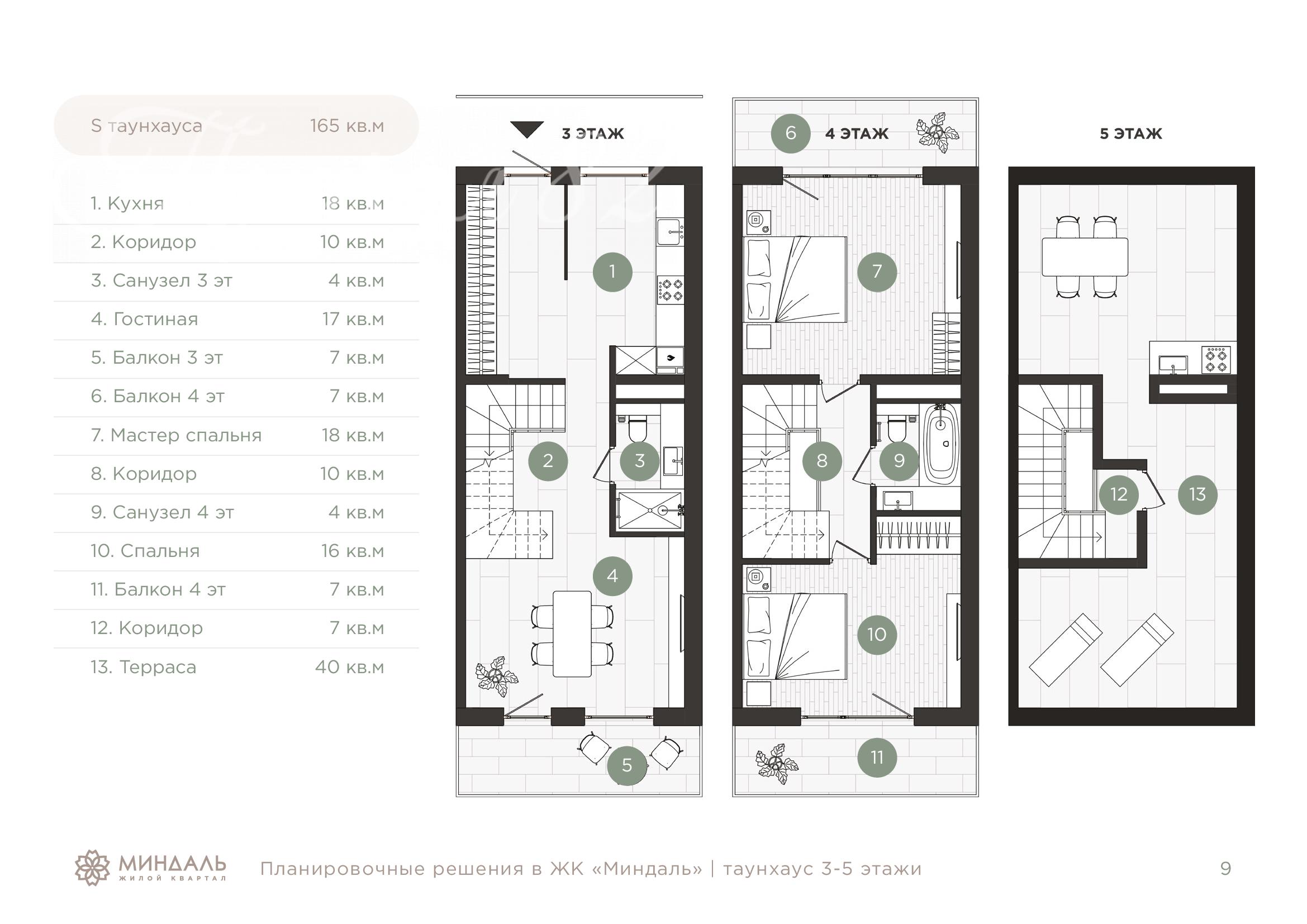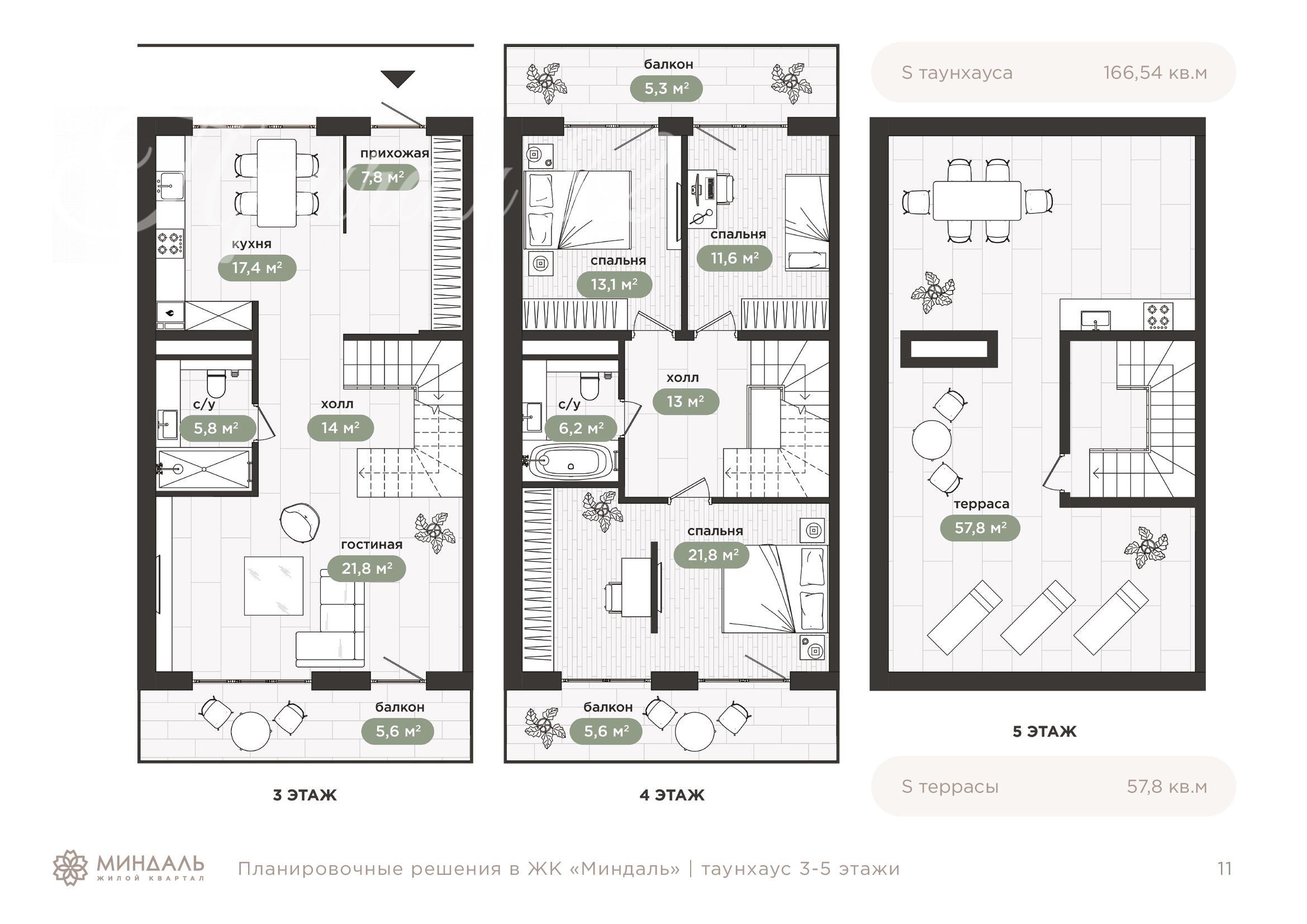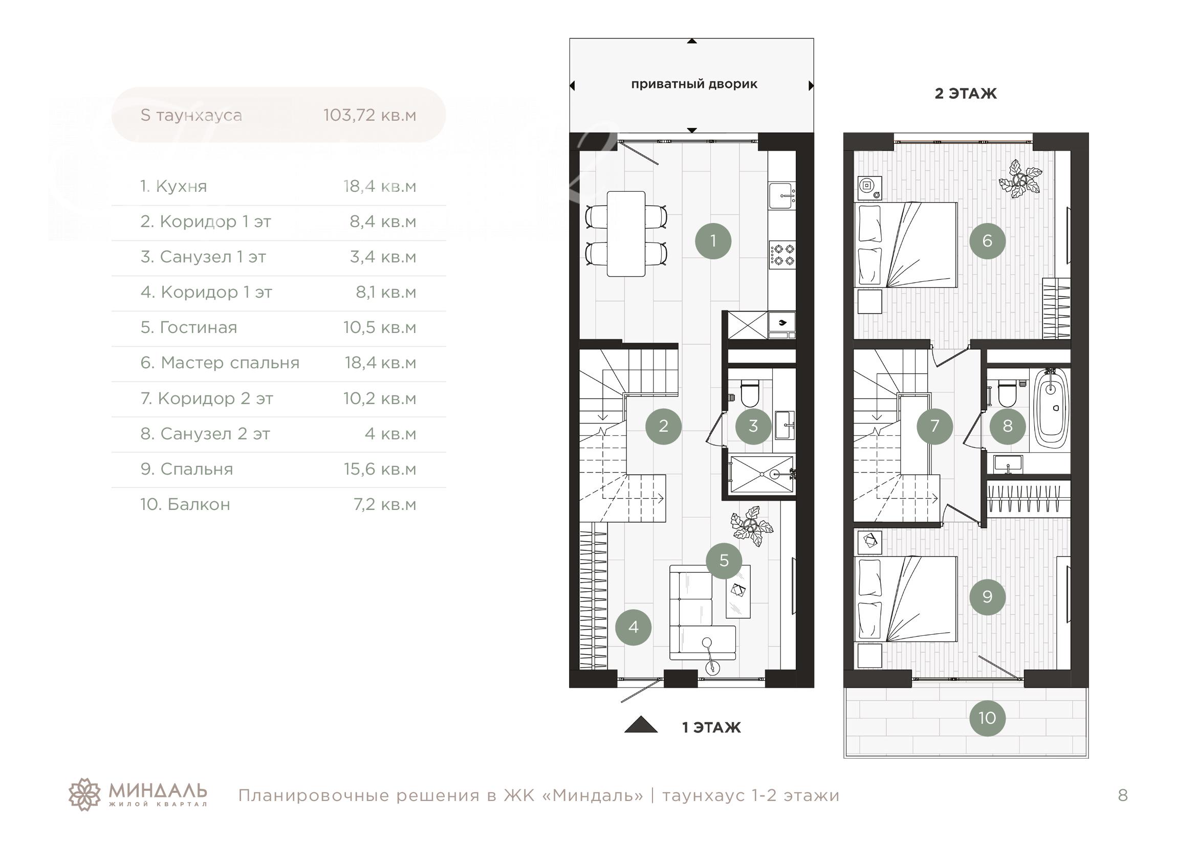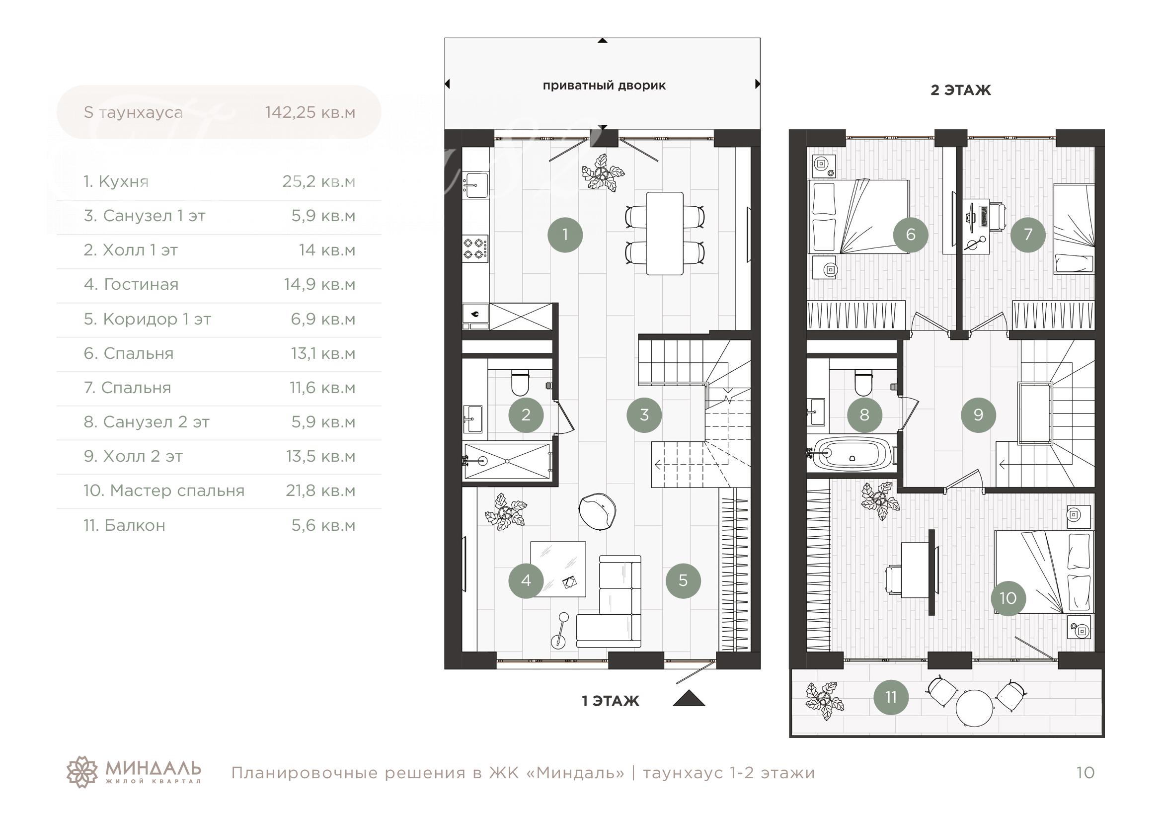 Всего в жилом квартале МИНДАЛЬ 70 одноуровневых и двухуровневых квартир, 14 таунхаусов.