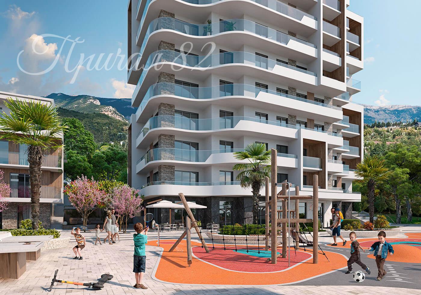 Территория закрытая и охраняемая. Здесь есть консьерж-сервис, подземный трёхуровневый паркинг на 98 мест и даже станция быстрой зарядки электромобилей. Для отдыха предусмотрены SPA с хамамом и спортивный зал, а для детей — игровая площадка и комната с видеонаблюдением.