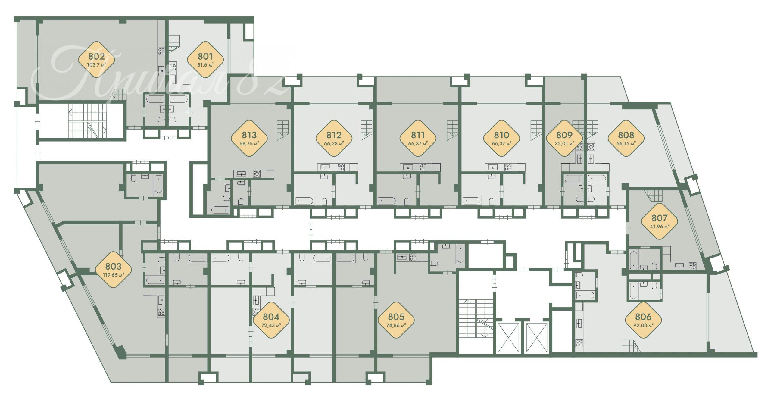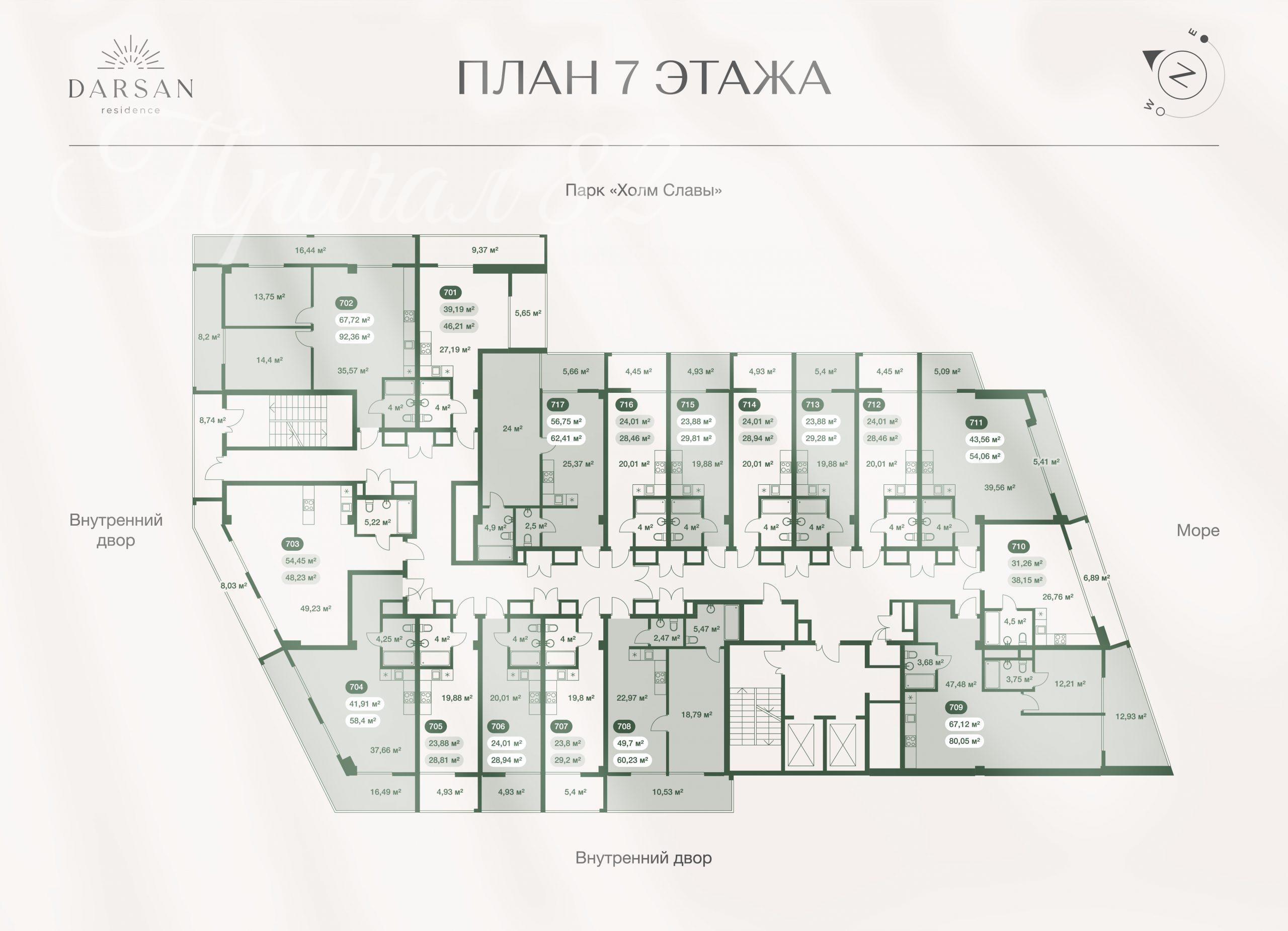 Апартаменты варьируются от 28 до 93 кв.м. с отделкой white box. Это дает свободу для реализации ваших дизайнерских решений.
