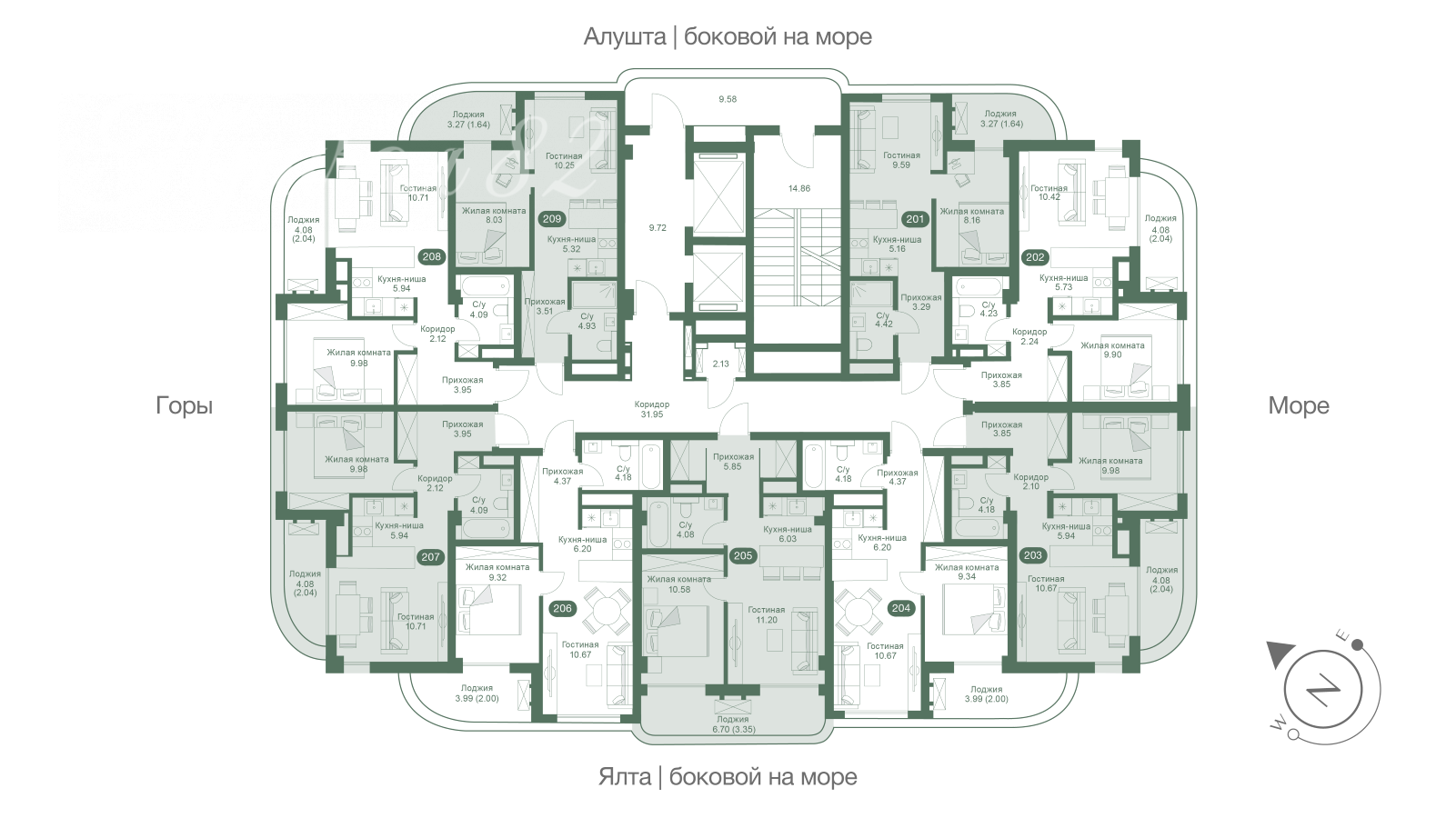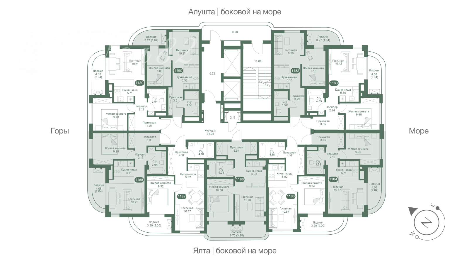 Площадь квартир от 32 кв.м. с возможностью объединения. Квартиры с отдельной спальней. Панорамное остекление. Высота потолков 3 м. Квартиры сдаются в черновой отделке. Лучшие виды на море, горы и город.