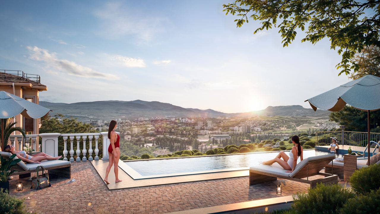 Так же резидентам будет доступна вся  инфраструктура  апарт-комплекса «Ласка»: SPA-комплекс, кинотеатр на свежем воздухе, летнее кафе, подогреваемый каскадный бассейн, зона отдыха с шезлонгами,  качели над водой, массажный кабинет, беседки и гамаки в окружении фруктовых деревьев.
